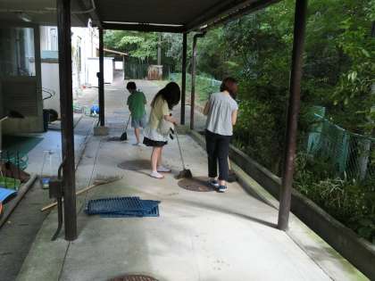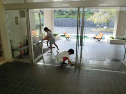 本校小学部の児童たちは、体育館周りや校舎周りをきれいに掃除してくれました