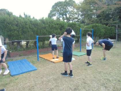 本校小学部では、体育の授業で鉄棒運動に取り組んでいます。