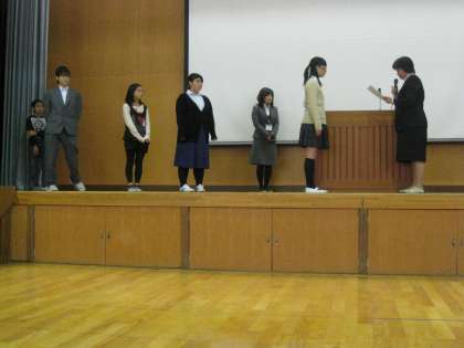 5月3日(金)の5校時に、児童生徒会役員認証式を行いました。新しく就任した役員は,校長先生から認証状を受け取り,一人一人が決意を述べました。力強い意志がこめられた決意は,テレビ会議システムを通して本校・4分教室の全ての児童生徒に届けられ,桃陽の新たな児生会メンバーにあたたかい拍手が送られました。同時に委員会と委員長の認証も行いました。