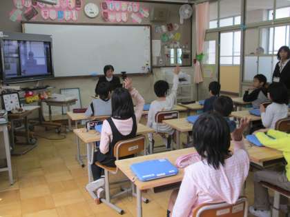5月3日,休日参観がありました。3時間目は人権についての学習をしました。前半は,本校と4つの分教室をつないで,校長先生のお話を聞きました。