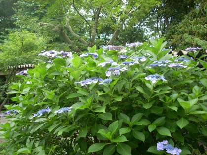 本校の敷地内のアジサイが,雨の中,美しい花を咲かせています。