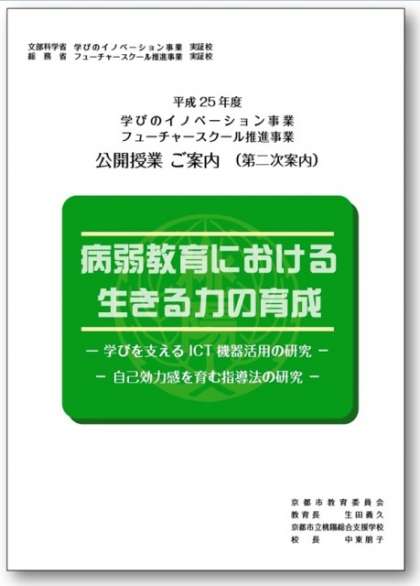 平成25年度 「学びのイノベーション事業・フューチャースクール推進事業」公開授業の二次案内をアップしました。下記アドレスまたはHP右下の研究発表会の欄からダウンロードできますので,よろしくお願いします。