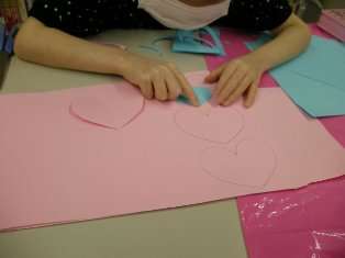 10月21日(月),学習発表会の英語劇に向けて,衣装の作成に取り組みました。子どもたちの好みの色はそれぞれ違っていて,すぐに自分の好きな色を選ぶことができました。午前中に色を選び,5時間目に作成に取りかかりました。頭を通したり,腕を通したりしたときは,思わず笑いが出ました。衣装の飾りはハートマークです。工夫を凝らしたハートマークを作っています。ポケットもつけたいという声も出て,これからどんどん発展しそうです。