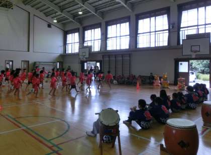 藤城小学校の子ども達は,おまつりのダンスを,本校小学部は,和太鼓を,それぞれ披露しあい,交流しました。