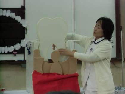 お話の後,むし歯や歯周病を予防するための正しい歯のみがき方について実際に歯ブラシを口に入れて練習しながら教えていただきました。今日の学習を生かして,虫歯や歯周病になりにくい歯磨きを実践して欲しいと願っています。