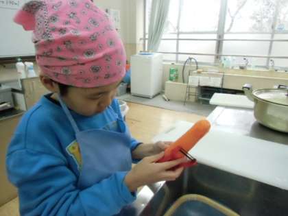 小学部2組は2月13日(金)5.6時間目の家庭科の時間に,ごはんとみそ汁を作りました。お家でのお手伝いで,炊飯器を使用してごはんを炊いたことがある子はいましたが,今回は透明で中の見えるお鍋での炊飯にチャレンジしました。水が沸騰していくようすや,お米がだんだんとごはんになっていくようすを見ることができました。