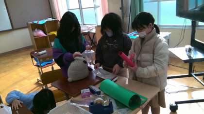 お礼の気持ちを込めて作ったプレゼントをラッピングした後、学校を出発しました。