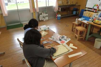 きめ細かい作業が続き、彫る際には力が必要で、子どもたちは集中して取り組んでいました