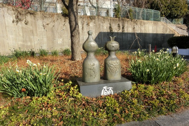 本校にある「願の像」の周囲に植えていた水仙の花が咲き始めています