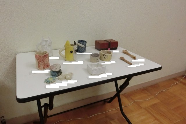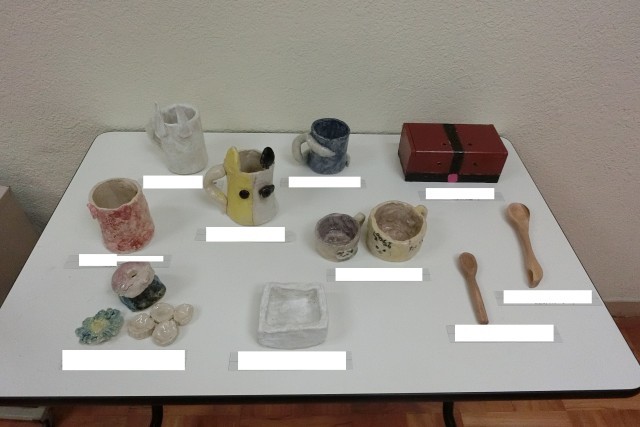 本校の玄関前にて本校小中学部の子どもたちの作品を展示しています