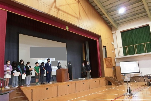 修了式後、表彰式があり、校長先生から賞状を渡されました。賞状を受けた児童生徒は嬉しそうな表情をしていました。