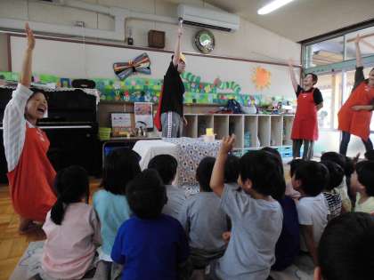 ほんわかくらぶのお母さん方が楽しい絵本の読み聞かせや手遊びをして下さいました。