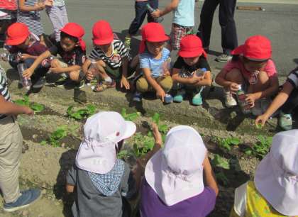 みんなで,幼稚園から持ってきた水をあげました。
