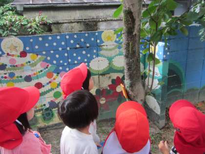 木の高くへ上っていくかまきりをじっと眺めていました。
