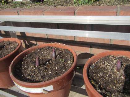 植木鉢を眺めながら,出てきたチューリップの芽の大きさを比べていたのです。