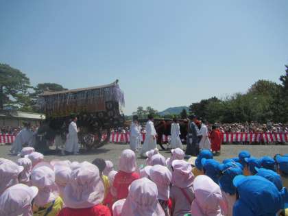 公立幼稚園は毎年,教育委員会のご配慮により見学場所を確保していただき,近くで行列を見ることができます。