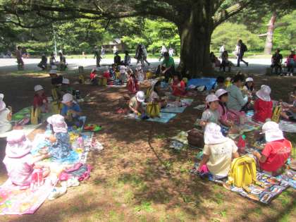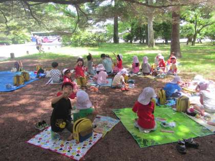 でも日陰は少しひんやりしていて,広い場所を見つけてみんなでお弁当を食べました。