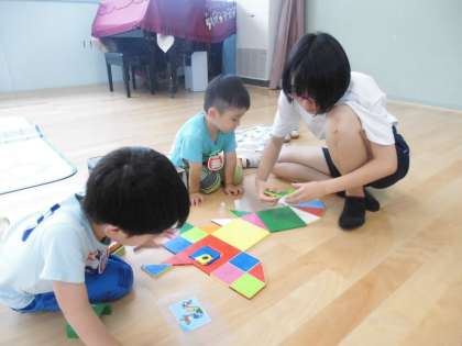 わくわく広場でも、園庭で鬼ごっこや砂場遊び、遊戯室ではぬり絵やフラフープ、磁石ブロックのピタゴラスなどで一緒に遊んでもらいました。