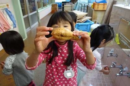 まずおいもをみんなで,洗いました。「きれいになったかなぁ」「早く食べたいなぁ」と聞こえました。