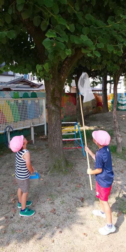 朝の比較的涼しい時間帯に,わくわく広場に来ている子供たちが,熱心にセミ取りをしていました。でも,観察の後は逃がしてくれる優しさも持っています。
