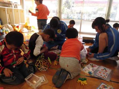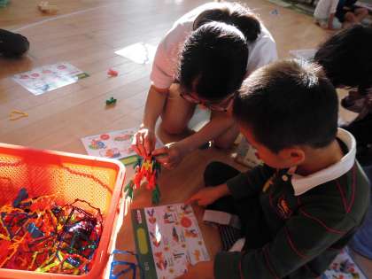 わくわく広場でも,アイクリップを使ってむずかしかったクジャクやロバ,カブトムシをお姉さんと一緒に作りました。