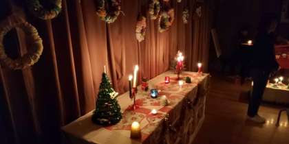 自然の光。ろうそくの炎がゆらゆら揺れて,とてもやさしいあたたかな空間でした。