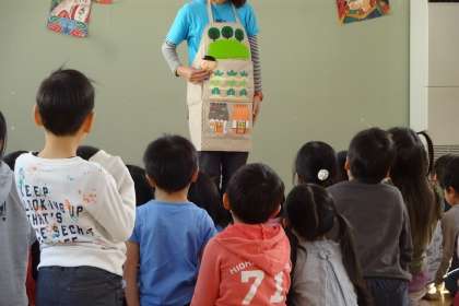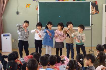 手遊びをしたりエプロンシアターを見たりして,楽しく過ごしました。お誕生日おめでとう!