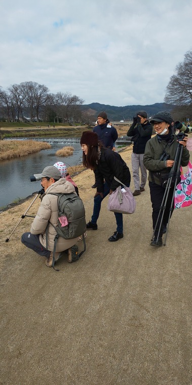 お天気に恵まれ少し肌寒い中,無事賀茂川バードウォッチングが開催できました。幼小地域から総勢43名の参加があり,野鳥の会のメンバー7名の指導員,学校運営協議会からは田中理事マメちゃん,上賀茂小学校谷校長先生,スクールガード隊嶈池さんのご協力の元大変有意義な探鳥会でした。10時から11時半までの1時間あまりの間に40種もの野鳥を見ることができまし。皆さんありがとうございました。上賀茂にはまだまだ自然がいっぱいありますね。