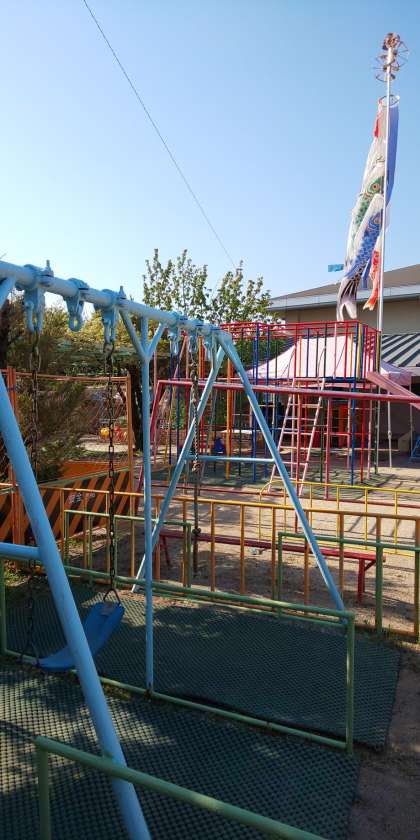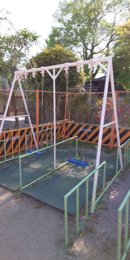 たいへんうつくしくうまれかわりました。みんなにつかってあそんでもらうのを,たのしみにしているぶらんこちゃんたちです。