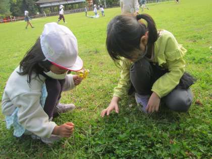 年長児ゆり組の子どもたちが,賀茂川をお散歩して上賀茂神社に出かけました。河川敷には,春の草花がいっぱい。「こんなんあった」「これなんやろう」と手にとっては,「だんだん紫になってる」「ちくちくしてるで」と様々な発見をしていました。カラスノエンドウの豆をいっぱい集めたり,中を確かめて立派な豆が出てきて喜んだり,「明日これで色水してみよう」と楽しみに持ち帰る姿もありました。
