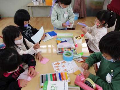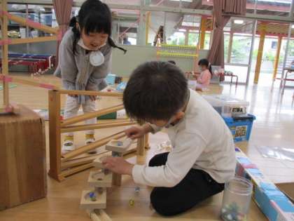 お友だちと一緒に作ったり,おしゃべりしながら楽しく遊んでいます。