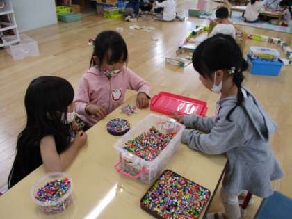 ビー玉ころがしやアイロンビーズ,ラキューやピタゴラス,ぬり絵や折り紙…まだまだたくさんあります。