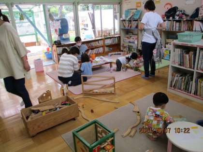 毎週木曜日9:30〜11:30まで実施しています。水曜日と金曜日には,0〜2歳児対象のたまご組にもお越しいただけますよ。