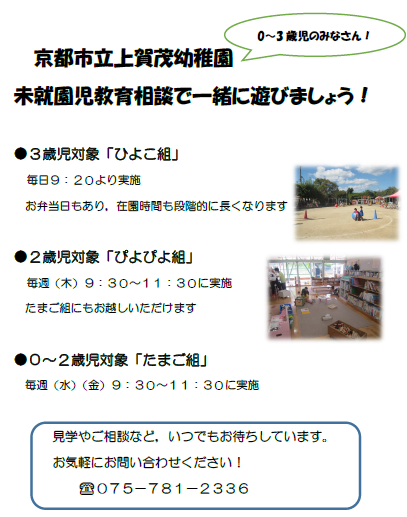 未就園児対象/0〜2歳児たまご組・3歳児ひよこ組について