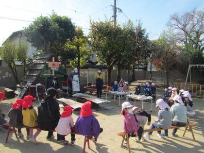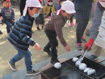 みんなで火のまわりを囲んで,あたたかさを感じました。「いつ焼けるかなぁ」「楽しみだな」とわくわくする子どもたちでした。