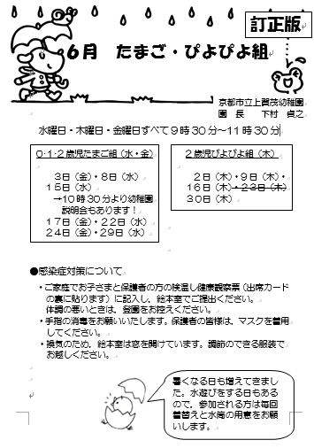 6月のぴよぴよ組の日程に変更があります。ご確認ください!