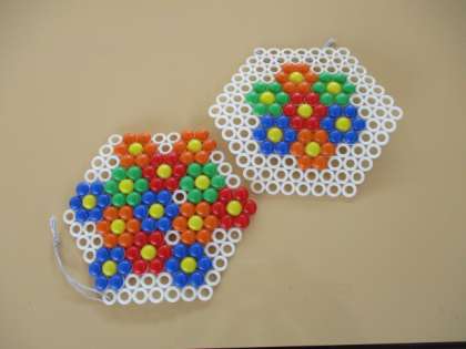色や形など考えたり,イメージをしながらつくっています。 「花の中に花をつくったよ」と友達や先生に見せて満足していました。