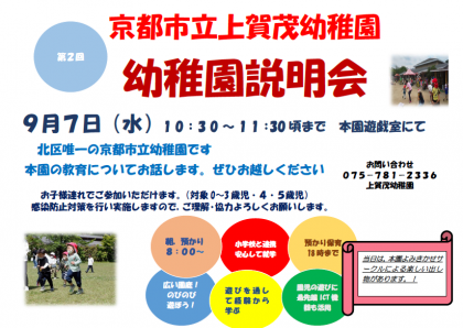9月7日(水)10:30より,幼稚園説明会および未就園児クラス説明会を行います!