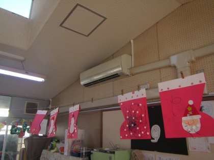 「これもつけたい」「絵もかこう」と,自分の好きなものがたくさんのブーツができました。早速お部屋に飾ってみました。にぎやかで素敵ですね。