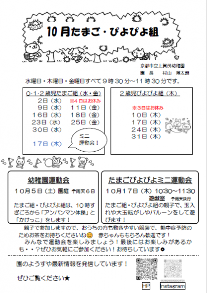 【訂正版】10月の未就園児クラスについて
