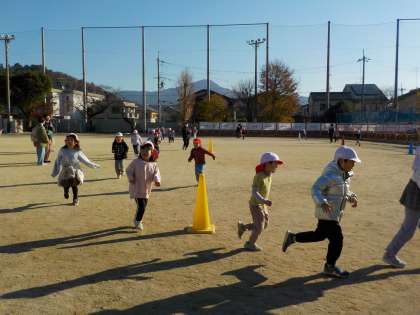 幼稚園とはちがって、大きな校庭にびっくりする子どもたち。おうちの方に応援してもらい、元気いっぱい走りました。