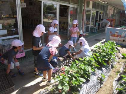 実は赤く着色したポプコーンの種なのです。「ほんとうは赤くないの」と洗ってみると黄色い色が出てきました。「あっ、とうもろこしや!」「ほんまや」と、みんなで納得。グループで蒔きました。「ポップコーンにして食べよう」と、またまた楽しみにしています。
