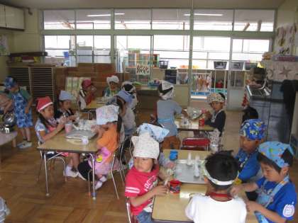 小さい組のお友達が食べているところは見れませんできたが,後から「おいしかったよ」と言ってもらったと,とても嬉しそうに話してくれました。「おいしかったなあ」「もっと食べたかった」「いっぱい豆を植えたらよかったな」「今から植えたら?」と,話していました。ほんとうにおいしかったようですね。自分たちが育てた豆で,自分達でつくった豆ご飯は特別な味だったようです。子どもたちは言われるままにつくるのではなく,お母さんに聞いたり自分の経験を生かしたりしながら進めてくれました。とびきりおいしい豆ご飯の味と共に,自分達でやりきった満足感や達成感を味わってくれたと思います。