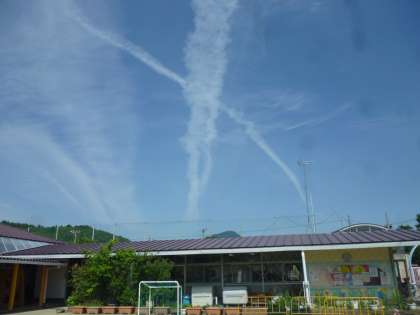 青空に浮かんだ白地のXには,どんな数が入るのでしょうか。園児の活動する姿を見ながら,未来の可能性を秘めた様々な数が入ることを期待しながら,真夏日を思わせる青空を眺める園長でありました。