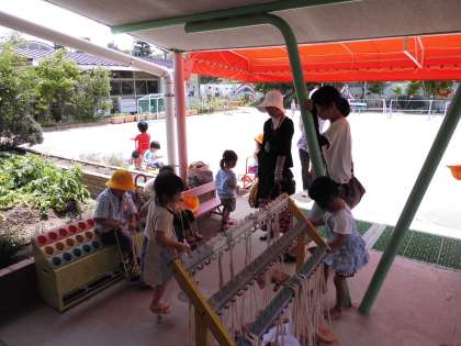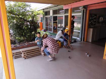 降園の後にもやっていました。大好きなお母さんが応援してくれるので,とってもうれしそうでした。