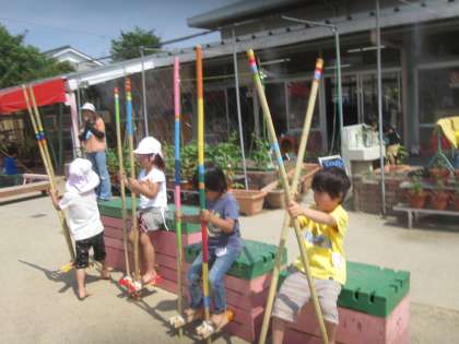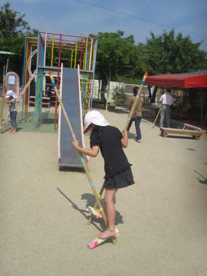 すみれ組に新しい友達が来てくれました。女の子が少ないすみれ組に待ちに待った女の子!遠いところからの引っ越しでしたが,登園するとさっそくお友達と「竹馬やりたい」「帽子取りもやってみたい」と笑顔で遊び始めた○ちゃんを見てとても嬉しかったです。ようこそ,上賀茂幼稚園へ!これからいっぱい遊んで仲良しになろうね。