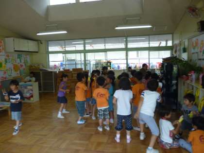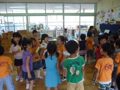 最後はみんなで盛り上がって踊ったり,歌ったり,人形を動かしたり…。授業の実習ご苦労様でした。これからも子どもたちの笑顔を忘れず授業を組み立てていってほしいと思います。