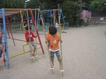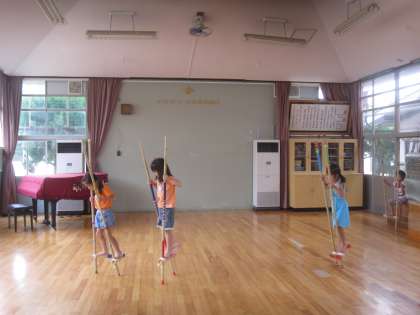 今日は雨が降りましたが、朝からすみれ組は「竹馬乗りたい!」と園内で乗れる場所を探して勇ましく竹馬を持って飛び出していきました。遊戯室は滑るのですが、乗っている子どももいます。少しの晴れ間を見つけては外へ!日に日に乗れる子どもが増えてきました。びっくりしました。初めて乗れたときの嬉しそうな顔といったら、とても言葉では言い尽くせないほどの笑顔です!でも、挑戦している子どもたちの顔もとっても素敵なのです。