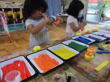 七夕の飾りをつくっています。今日は輪つなぎをつくりました。