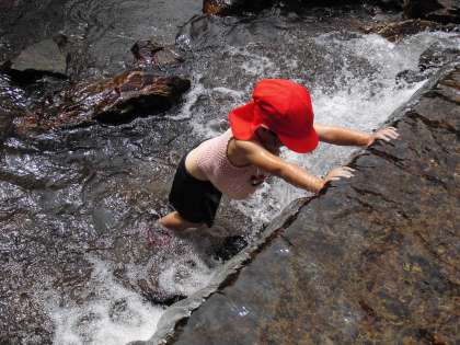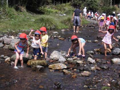 よい天気でした。川の状態もとってもよかったです。水を掛け合ったり,ドボンと腰までつかったり,バシャバシャ泳いだり,滝(のような流れ)に打たれたり,ジュースを冷やしたり,すべって転んだり,虫を探したり…。